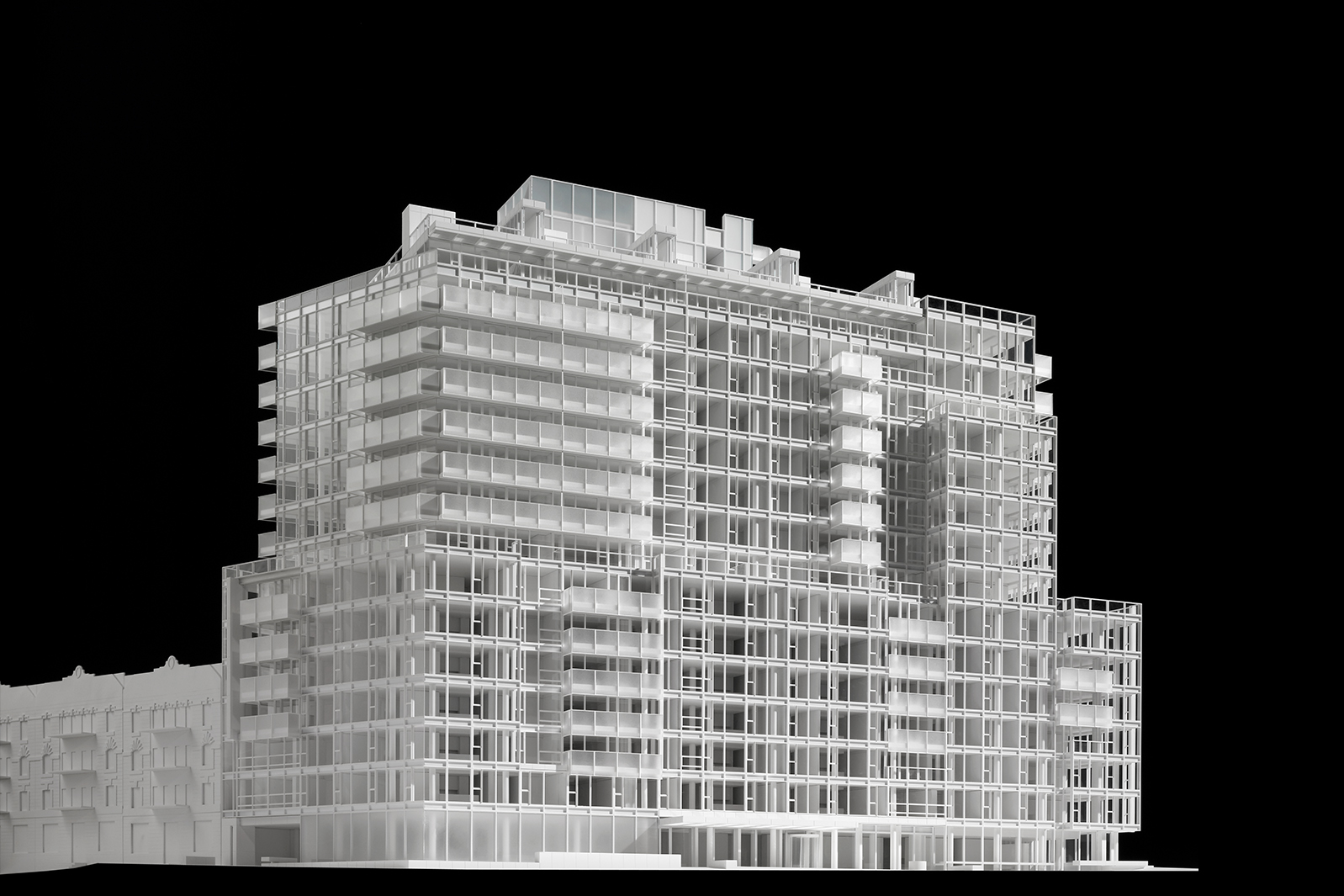 Located on a prominent corner of Prospect Park in Brooklyn and along Grand Army Plaza, the building affords its residents optimal access to Brooklyn’s burgeoning cultural renaissance while being conveniently located within a short commute to Manhattan. Nearby attractions and historic sites include the Brooklyn Public Library and the Brooklyn Botanic Garden. The design is intended to enhance the urban space of Grand Army Plaza while establishing new relationships to the nearby thoroughfares and the historic urban fabric.