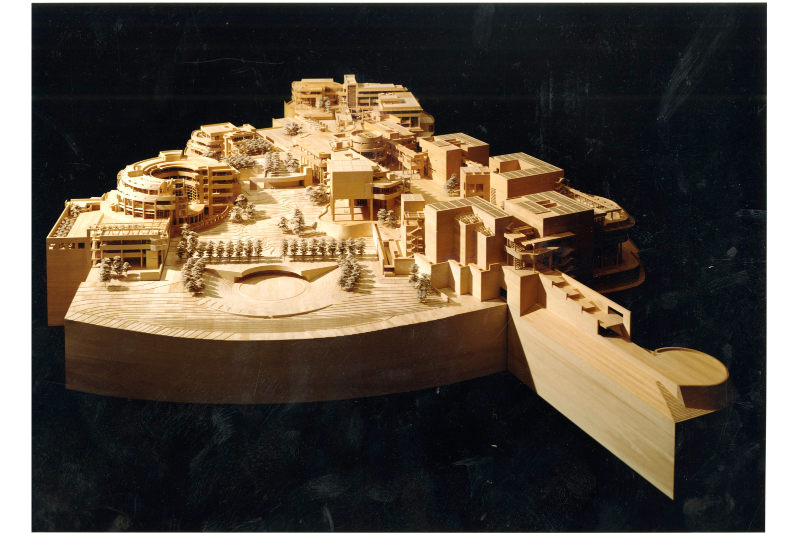 The Getty Center occupies a unique 110-acre site jutting southward from the Santa Monica Mountains. The program brings the seven components of the Getty Trust into a coherent unity, while maintaining their distinct identities. The individual buildings of the campus—which include the Museum, a 450-seat auditorium, the Conservation Institution, the Center for Education, and the Research Institute, which itself includes a million-volume library—are organized along two of the site’s topographical ridges, seamlessly integrating the architecture into the surrounding landscape.