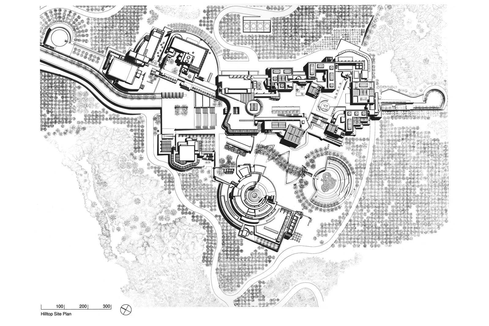 The approach begins when visitors leave their vehicles in the underground parking garage and board the tram that transports them to the hilltop. Exploring the campus, visitors encounter smaller pavilion buildings, connected by gardens, that break down the scale of the museum experience, allowing for pauses and encouraging interplay between the interior and exterior. Throughout, buildings are designed to take advantage of the climate through the use of loggias, pergolas and full height glazing at the external perimeter.