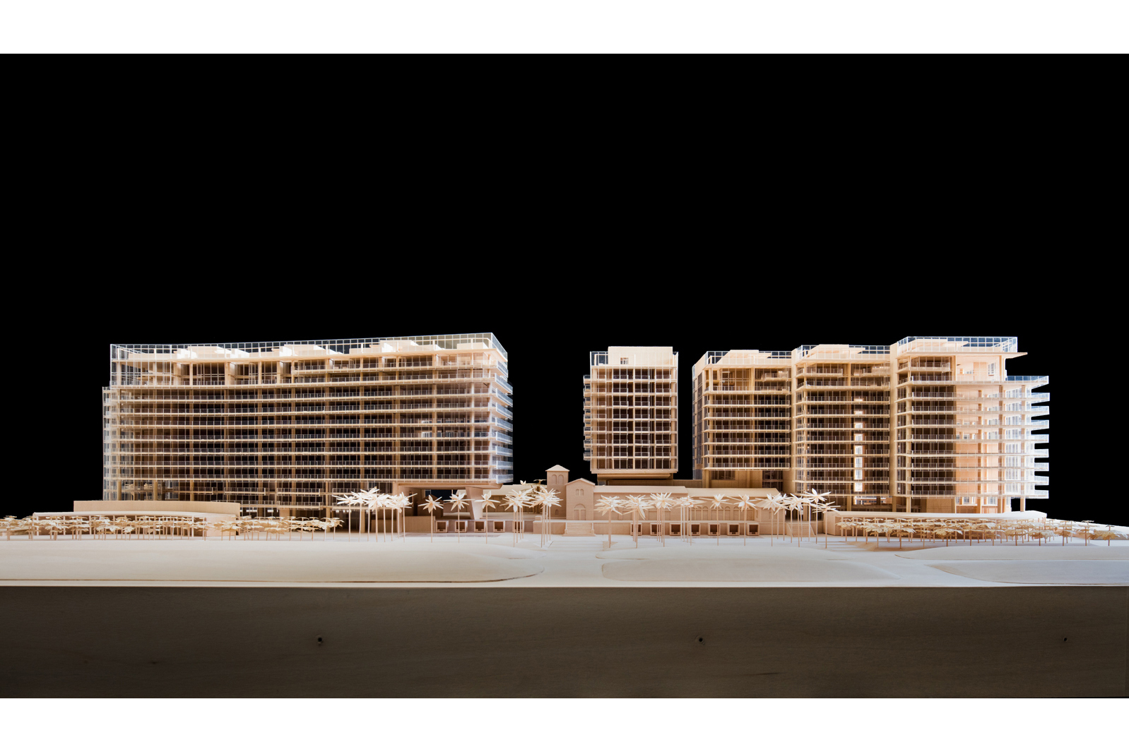 The complex is composed of three new buildings harmoniously configured around the historic Surf Club. A new Four Seasons hotel rises from the center of the Club’s original exterior courts, while two 12-story residential buildings located to the North and to the South of the historic Surf Club buildings flank the hotel. The design also incorporates additional programming including a private membership club, two restaurants, four swimming pools, a state-of-the-art spa and fitness center, more than 40 beach cabanas, and an expansive park and oceanside gardens. A series of signature homes and penthouses, ranging in size from 1400 to almost 8000 square feet, offer residents extraordinary views stretching from the Atlantic to downtown Miami.